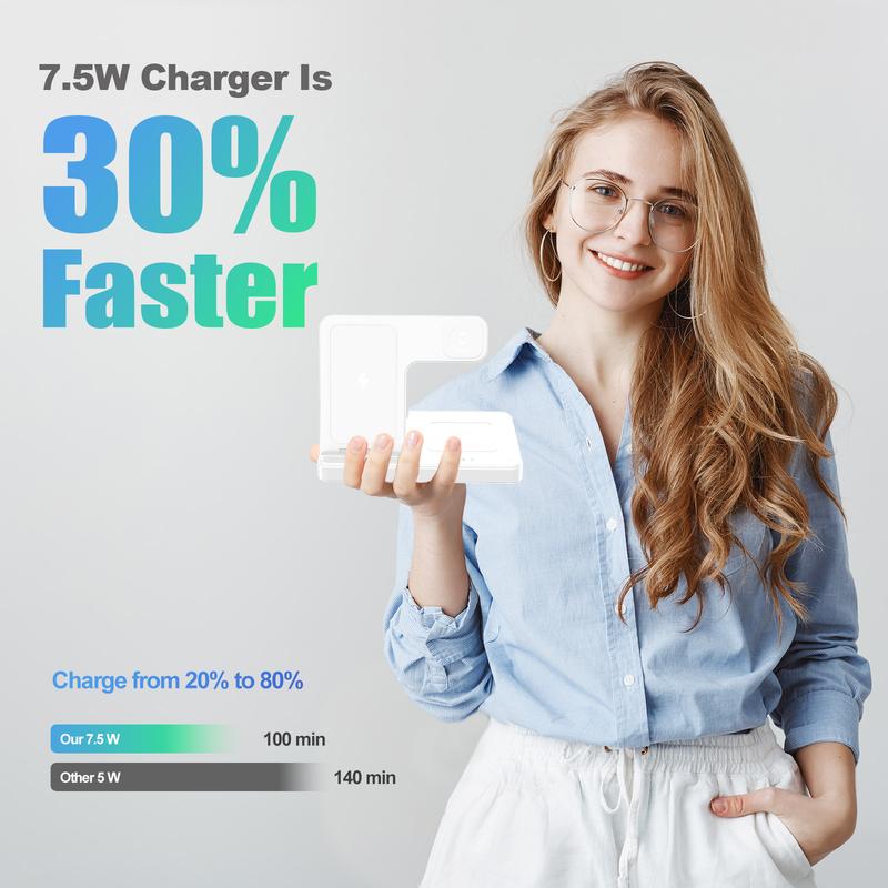 3-In-1 Wireless Charger: Fast, Portable, Safe Charging for Iphone, Apple Watch & Airpods