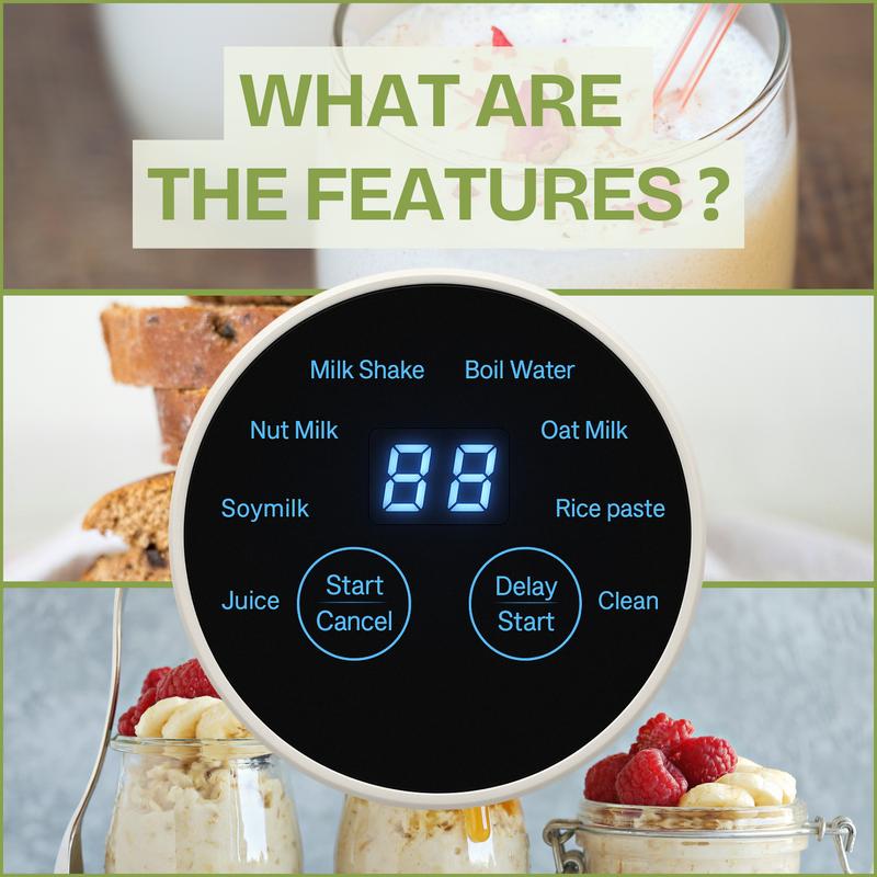 - Functions:8-in-1 Modes: Nut Milk, Oat Milk, Soymilk, Juice, Smoothies, Rice Paste, Boil Water, Clean