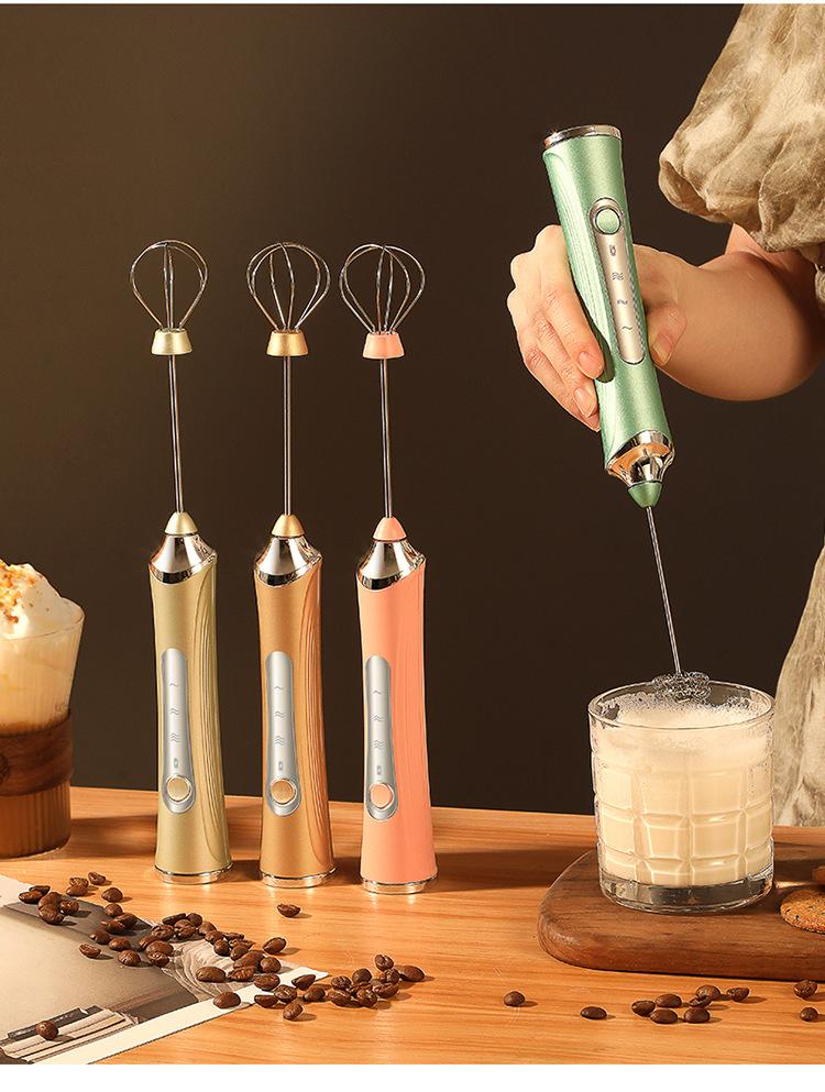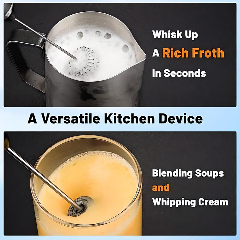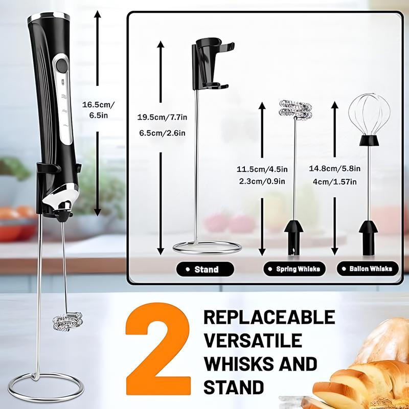 PROFESSIONAL KITCHEN AND BARISTA TOOL: The electric milk frother comes with 3 speeds, 2 heads and 1 stand, milk frother is one of the kitchen essentials to make perfect milk froth for your coffee all day long