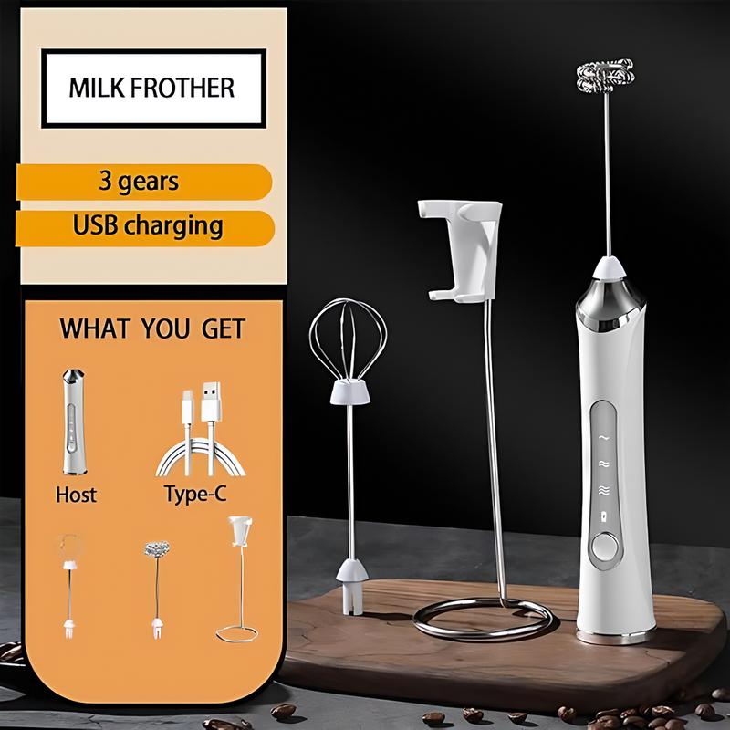 Kitchen Powerful Rechargeable Milk Frother with Stand Handheld Drink Mixer for Coffee, Matcha Electric Foam Maker Beater Household Appliances