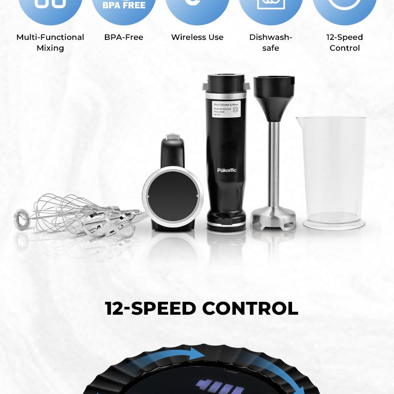Introducing the Pukomc Cordless Hand Blender & Mixer, your ultimate kitchen companion for efficient and safe food preparation.